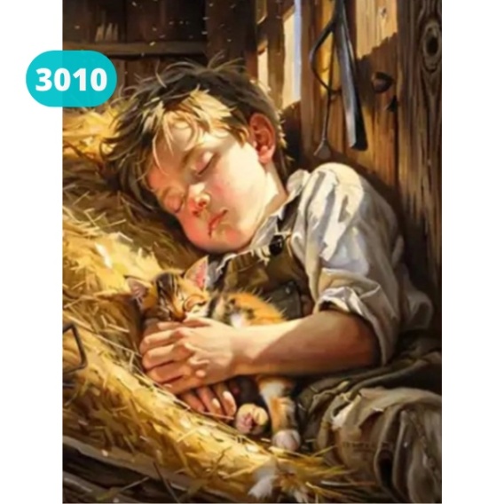 (30x40) Haft Diamentowy Mozaika Diamond Painting Wieś Farma Słoma Chłopiec