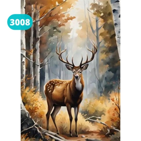 (30x40) Haft Diamentowy Mozaika Diamentowa Malowanie Diamentami Jeleń Las Krajobraz