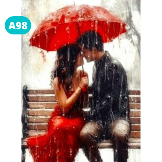 Haft Diamentowy Diamond Painting Kobieta Para Ławka Miłość Parasol