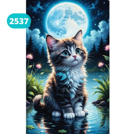 (30x40) Haft Diamentowy Mozaika Diamond Painting Kotek Księżyc Pełnia Dla Dzieci
