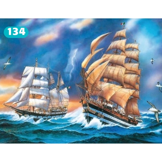 • (30x40) Haft Diamentowy Mozaika Diamond Painting Sztorm Statek Statki Morze