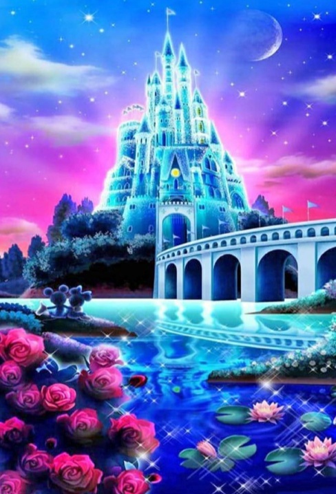 • (50x40) Haft Diamentowy Na Grubym Płótnie Na Ramie Zamek Magiczny